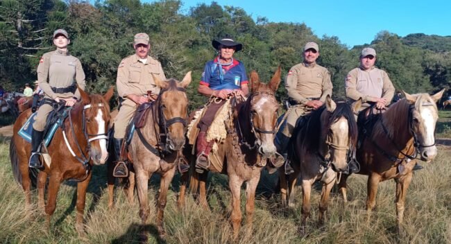 A participação na cavalgada ocorreu na tarde de sábado e na manhã de domingo, dias 03 e 04 de maio. O tradicional evento reuniu cavaleiros de diversas localidades em celebração ao aniversário do senhor José Bepe Locatelli, figura respeitada por sua dedicação às tradições culturais. Quatro policiais militares acompanharam a cavalgada devidamente fardados, montados e integrados à comitiva, representando com orgulho a Polícia Militar de Santa Catarina (PMSC).