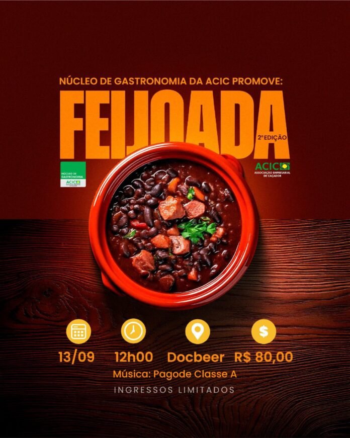 O Núcleo de Gastronomia da Associação Empresarial de Caçador (ACIC) prepara um sábado especial com a realização da 2ª Feijoada, marcada para o dia 13 de setembro, às 12h, no Docbeer. O evento promete aquecer o coração e o paladar com o melhor da culinária, reunindo sabor, alegria e boas companhias.