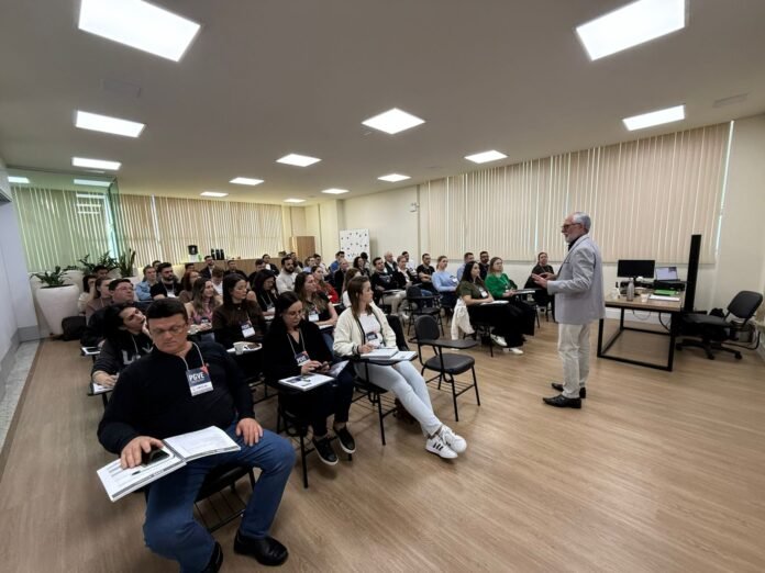 Desta vez o case de sucesso apresentado aos alunos do PGVE veio com o empresário Moacir Salamoni, da Madeiras Salamoni. Ele foi recebido pelo vice-presidente do Serviço da ACIC, Leandro Bello.