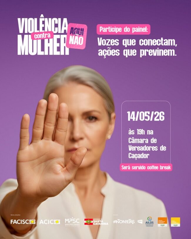 Dentro da programação da campanha estadual “Aqui Não”, que mobiliza o setor empresarial catarinense pelo enfrentamento à violência contra a mulher, a Associação Empresarial de Caçador (ACIC) promove o Painel “Vozes que conectam, Ações que previnem”, reunindo representantes de diferentes instituições para dialogar sobre prevenção, acolhimento e responsabilidade social.