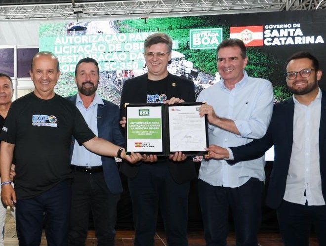 Durante a abertura da ExpoCaçador o governador assinou a autorização para licitação do primeiro trecho da BR-116 até Lebon Régis. O trecho dois, de Lebon Régis até Caçador está em vias também de ser licitado e o trecho três de Caçador até a BR-153, precisará ter o projeto refeito para licitação.