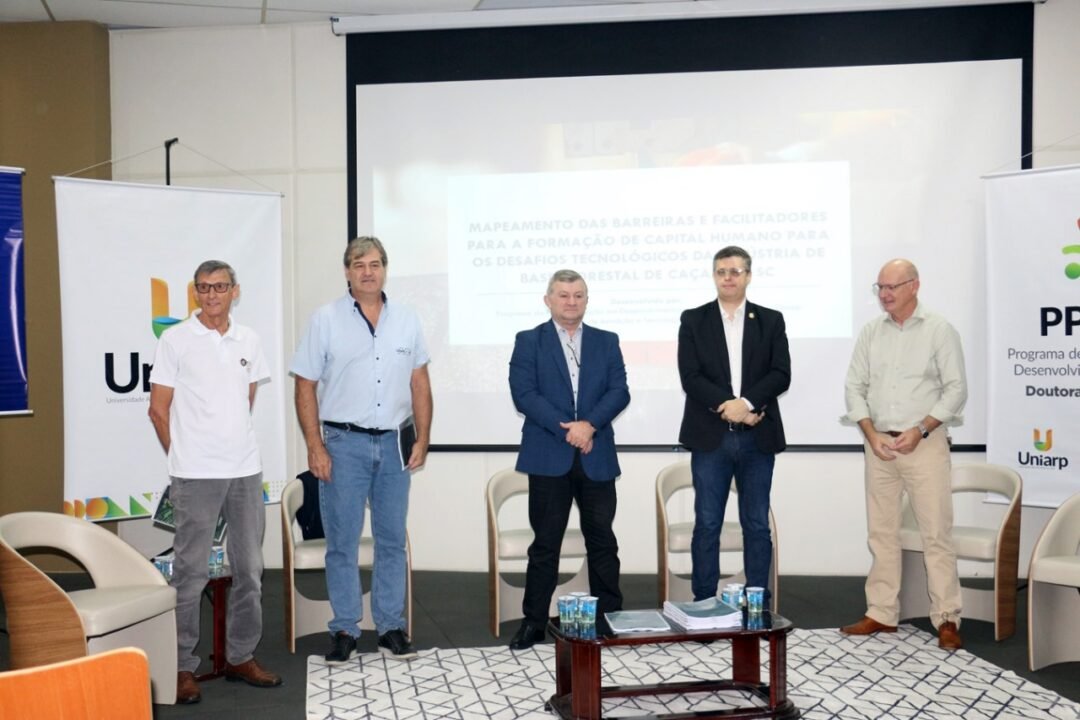 Mais de 3.400 colaboradores do setor participaram no período de dois anos da pesquisa, desenvolvida pela UNIARP, por meio do Mestrado em Desenvolvimento e Sociedade e pelo Núcleo de Inovação e Tecnologia (NIT). As pesquisadoras responsáveis, Dra. Ivanete Schneider e Dra. Juciele Marta Baldissarelli, fizeram a apresentação dos resultados da pesquisa: “Mapeamento das Barreiras e Facilitadores para a Formação de Capital Humano para os Desafios Tecnológicos da Indústria de Base Florestal de Caçador/SC”.