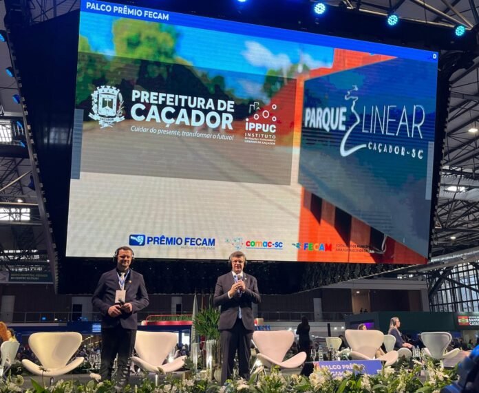 A Prefeitura de Caçador foi reconhecida com o Prêmio FECAM Práticas de Excelência 2025, pela inovação e impacto social do projeto Parque Linear, desenvolvido pelo Instituto de Pesquisa e Planejamento Urbano de Caçador. O presidente do IPPUC, Alexandre Schermach, apresentou o projeto nesta terça-feira, 02, durante o Congresso de Municípios, Associações e Consórcios, o COMAC, realizado de 2 a 4 de setembro em Balneário Camboriú.