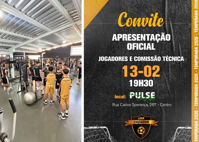 O Caçador Futsal promove nesta sexta-feira, às 19h30, a apresentação oficial dos jogadores e da comissão técnica para a temporada 2026. O evento será realizado na Pulse Lounge Bar e é aberto à comunidade.