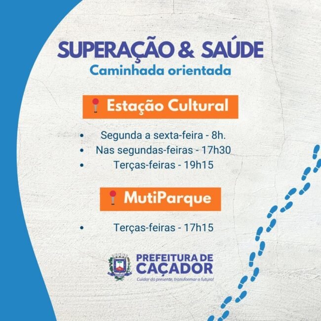 A Prefeitura de Caçador, através da Secretaria de Cultura, Esporte e Lazer, inicia nesta terça-feira (11), com o programa “Superação e Saúde”, que consiste em caminhadas orientadas no Parque Central, trechos do Parque Linear e MutiParque.