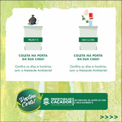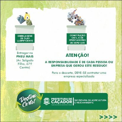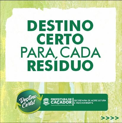 O descarte correto dos resíduos ficou mais fácil com a campanha Destino Certo, da Prefeitura de Caçador. A iniciativa oferece opções práticas e acessíveis para que os moradores destinem seus resíduos de forma consciente, contribuindo para a preservação do meio ambiente.