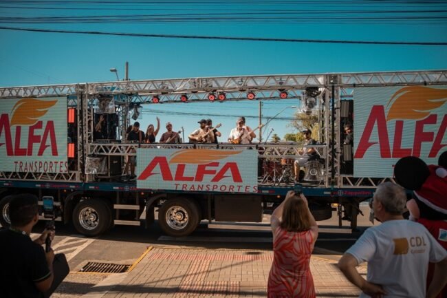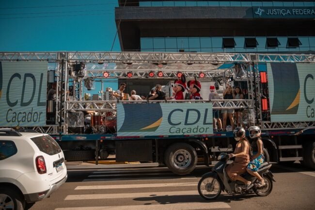 A carreta palco do Natal Cultural 2025, promovido pela CDL Caçador, movimentou as principais ruas da cidade neste sábado, 20, levando música e clima natalino ao público com a apresentação da banda Bagpipes. O show móvel chamou a atenção de moradores e visitantes, que acompanharam a atração ao longo do trajeto pelo comércio local.