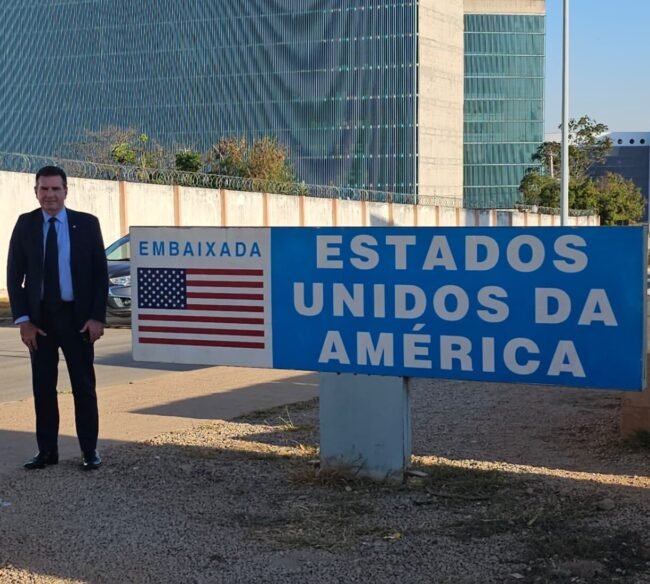 Nesta terça-feira (12), o deputado federal Valdir Cobalchini (MDB-SC) esteve na Embaixada dos Estados Unidos, em Brasília, para tratar diretamente dos impactos econômicos provocados pela recente elevação de tarifas sobre produtos brasileiros exportados ao mercado norte-americano.
