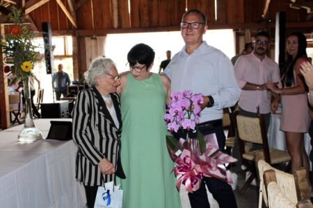 Ivone recebeu no evento uma placa de homenagem e mimos, entregues pelo marido Eltes Sinhorin e pela sua mãe, Elzira Basei, além de todo o carinho de todas as equipes da FIESC, incluindo do gerente executivo Daniel Tenconi, do 1º vice-presidente Gilberto Seleme e do vice-presidente Regional, Leonir Tesser.