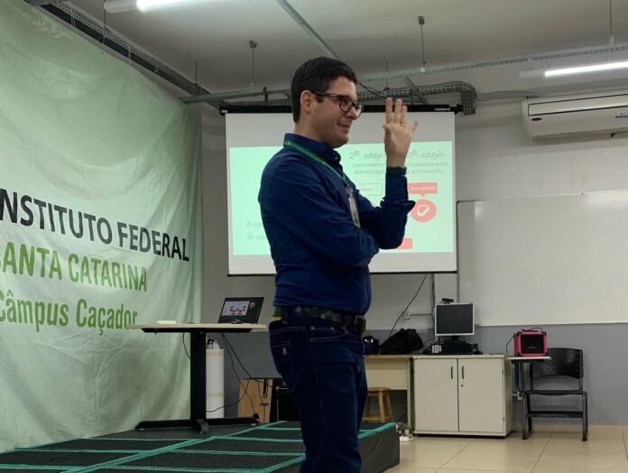 O Ecossistema Local de Inovação de Caçador se reuniu na quinta-feira, 26 de outubro, no IFSC, para prestigiar uma palestra ministrada pelo Professor Dr. Eduardo Villar, intitulada “O Ecossistema Empreendedor e de Inovação de FoodTechs: O Caso do Ecossistema em Cingapura”. O Dr. Eduardo é doutor em Administração pela Universidade Federal do Paraná (UFPR), realizou um estágio doutoral (PDSE/CAPES) na Cass Business School da City University, em Londres, Reino Unido, e possui dois pós-doutorados em estratégia e processo decisório pela UFPR. Ele é especializado em diversas áreas, incluindo ecossistemas empreendedores e inovações radicais na cadeia de produção de alimentos.