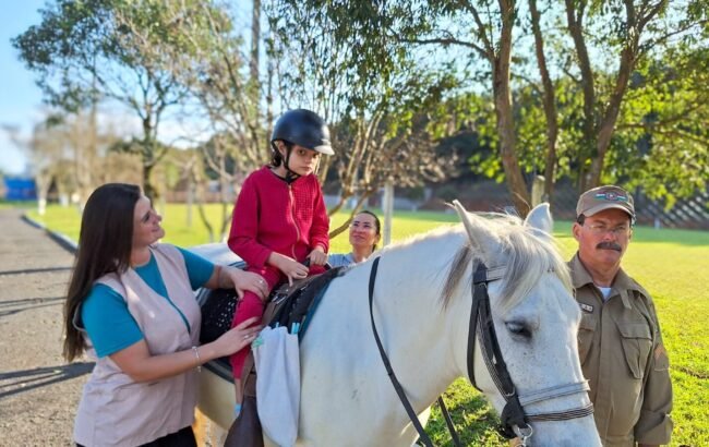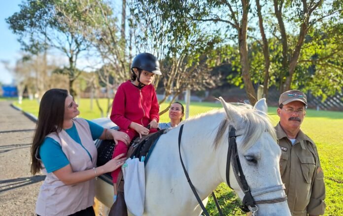 Mais de 1,5 mil sessões de equoterapia já foram realizadas no quartel da Polícia Militar (PM), em Caçador, com alunos da Associação de Pais e Amigos dos Excepcionais (Apae). A iniciativa tem como objetivo promover o desenvolvimento físico, motor e emocional das crianças e adultos atendidos.