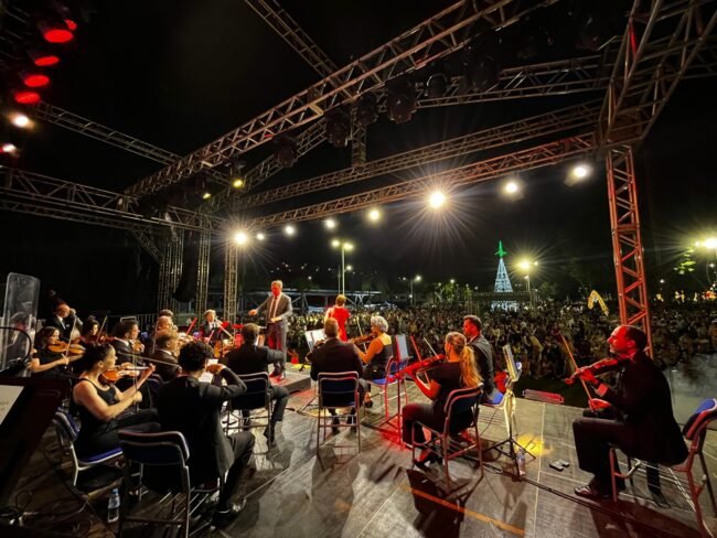 A apresentação do espetáculo “Clássicos da Música Italiana”, da Camerata Florianópolis, foi um verdadeiro sucesso e reuniu um grande público no Parque Central, neste domingo, dia 7. A atração faz parte da programação do Natal dos Sonhos Caçador, uma realização da Prefeitura de Caçador.