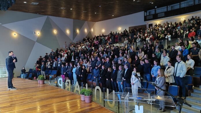 A rotina de um atleta de alto rendimento e a rotina de um empresário, comerciante ou empreendedor de alto rendimento, foi apresentada na noite de quinta-feira (15) no Teatro da Uniarp pelo medalhista olímpico e palestrante Gustavo Borges. O atleta e empresário esteve em Caçador para ministrar o tema “Excelência e Empreendedorismo: A Jornada de um Campeão”, em evento que reuniu cerca de 450 pessoas em uma promoção do Núcleo de Gestão pela Excelência da Associação Empresarial de Caçador (ACIC) com apoio do Sebrae e Uniarp.