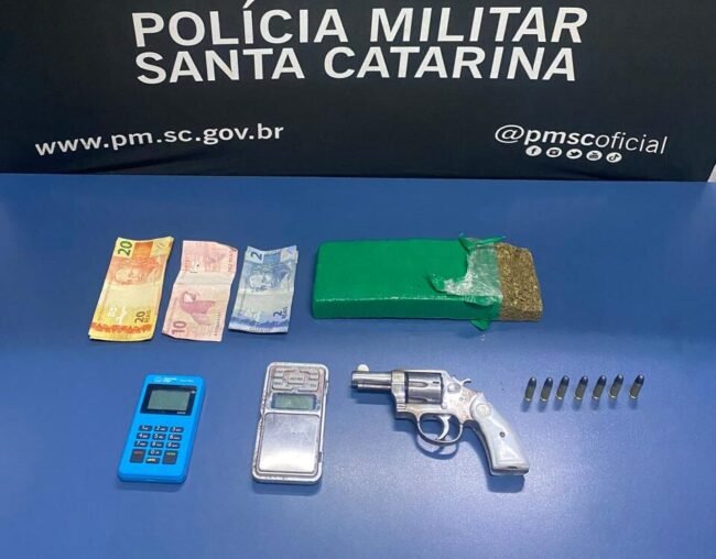 No procedimento de abordagem, foi localizado um revólver calibre .32 com cinco munições intactas. Em busca posterior, autorizada pelo abordado, foram encontradas duas munições adicionais, bem como uma caixa contendo cerca de 631 gramas de maconha, balança de precisão e dinheiro, todos compatíveis com a prática de tráfico de entorpecentes.