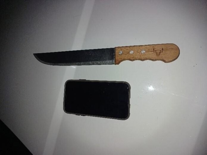 Durante a abordagem foi encontrada uma faca de cozinha, com aproximadamente 30 cm de lâmina, presa à cintura do abordado, que teve o objeto apreendido. No decorrer da ação, o homem passou a proferir ofensas contra um dos policiais militares, caracterizando o crime de desacato.