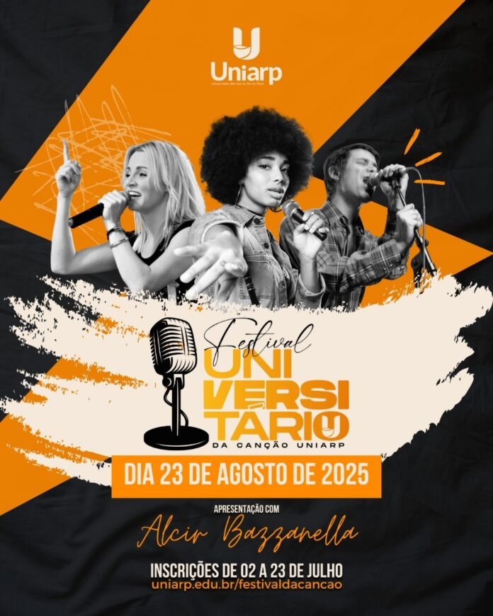 Resgatando a tradição dos festivais musicais, a UNIARP realiza dia 23 de agosto o, Festival Universitário da Canção. O evento busca valorizar e prestigiar os talentos musicais da comunidade acadêmica dos campi de Caçador e Fraiburgo, além de promover a integração entre os estudantes, incentivar a expressão artística e fortalecer a cultura regional.