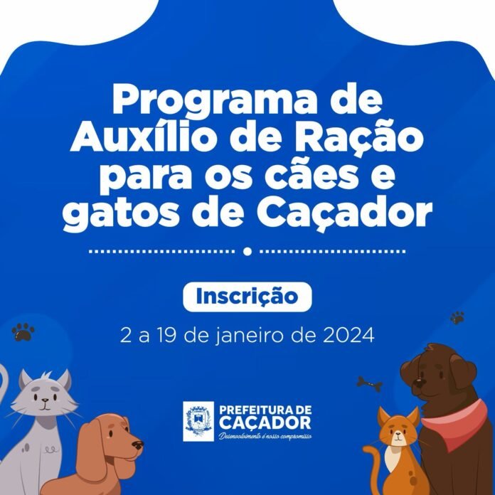 As inscrições para o programa de Auxílio Ração para cães e gatos, da Prefeitura de Caçador, encerra na próxima sexta-feira, 19 de janeiro. O programa é destinado para famílias de baixa renda cadastradas no CadÚnico; cuidadores individuais e organizações não governamentais ligadas à causa animal.