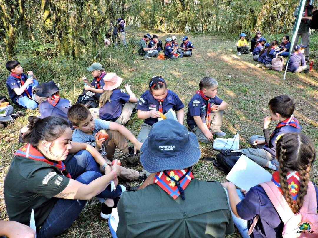 Na parte da tarde chegou o ônibus com 40 lobinhos ansiosos pela experiência inovadora que começaram ter a partir do IBOA (rito de inspeção, hasteamento da Bandeira, oração e avisos) naquele local distinto do habitual na Sede do GE Pindorama. Após o hasteamento da Bandeira Nacional os Lobinhos se reuniram em volta do Biólogo Anderson Copini, presidente da Ong Gato do Mato, para ouvir sua explicação sobre o que é Paleontologia e como ela surgiu, daí a garotada foi desafiada já como paleontólogos, organizados em equipes, a responderem perguntas e iniciarem suas escavações a procura de fósseis em áreas marcadas com os números de cada equipe de 1 a 8.