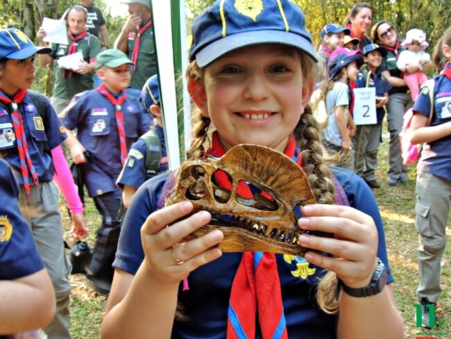 Na manhã do sábado (17), as lideranças da Ong e do Pindorama demarcaram oito áreas onde enterraram “fósseis” para serem descobertos pelo mesmo número de equipes de Lobinhos. Os “fósseis” empregados são esqueletos de animais da região e réplicas de crânios de dinossauros importados da China pela Gato do Mato para esta finalidade.