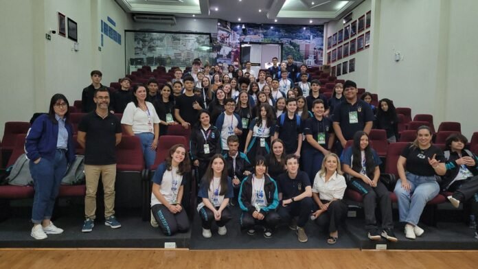 Os integrantes do Programa Câmara e Prefeitura Mirim de Caçador participaram, nesta quinta-feira (23), em Videira, do Seminário de Iniciação do Vereador Mirim, promovido pela Assembleia Legislativa de Santa Catarina. O evento reuniu também representantes dos municípios de Rio das Antas e Videira, proporcionando um importante momento de integração, troca de experiências e aprendizado entre os jovens parlamentares da região.