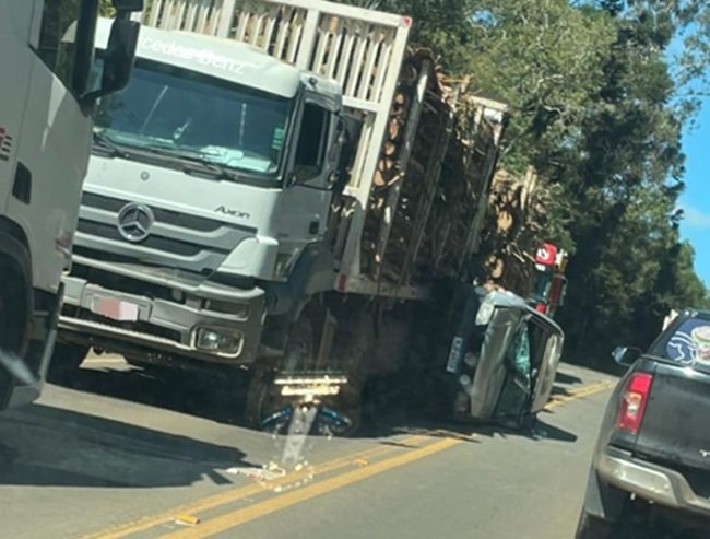A ocorrência envolveu o caminhão trator Scania/R450, com placas do município de Palmitos/SC e semi reboque com placas do município de Palmitos/SC e conduzido por um homem de 21 anos de idade e o caminhão trator Mercedes Benz Axor, com placas do município de Caçador e semi reboque com placas do município de Caçador e conduzido por um homem de 42 anos de idade