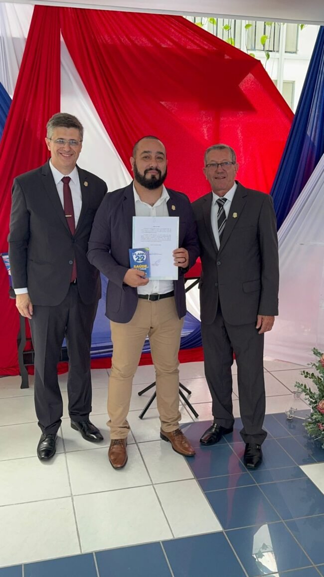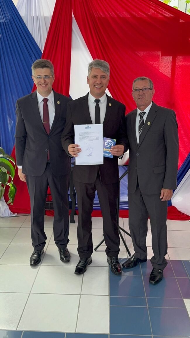 Os novos secretários da Prefeitura de Caçador tomaram posse nesta quarta-feira, 1º de janeiro. Durante a solenidade, o prefeito Alencar Mendes e o vice-prefeito, Itacir Fiorese Fically, entregaram o plano de governo dos próximos quatro anos, além do broche do brasão do município.