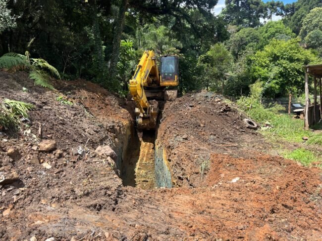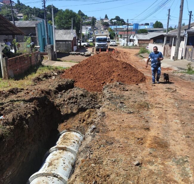 As obras de tubulação, realizadas pela Prefeitura de Caçador, através da Secretaria de Infraestrutura, na rua Paulo Luderinghausen, próximo ao posto de Saúde do bairro Martello, chegam à fase final.