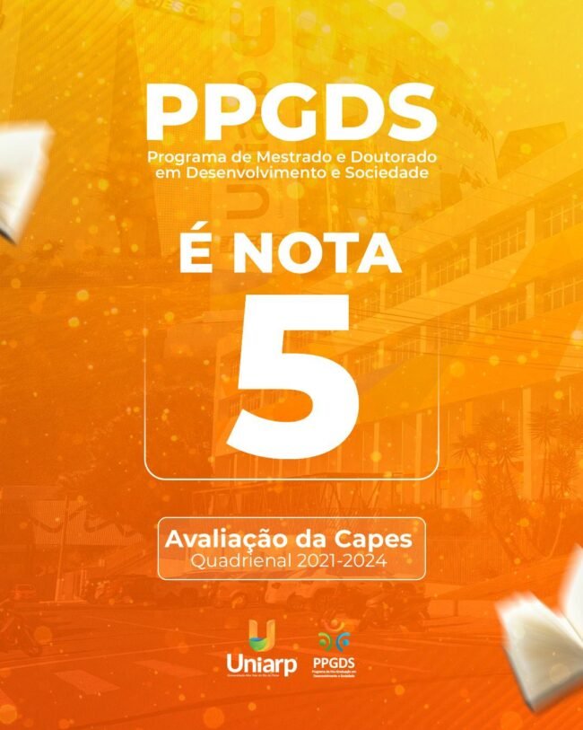 O Programa de Pós-Graduação em Desenvolvimento e Sociedade (PPGDS) da Universidade Alto Vale do Rio do Peixe (UNIARP) alcançou Nota 5 na Avaliação Quadrienal da CAPES (2021–2024). O resultado marca a consolidação e a maturidade acadêmica do programa, que avançou em relação ao conceito anterior e passou a integrar o grupo de cursos reconhecidos nacionalmente pela excelência na pós-graduação brasileira.