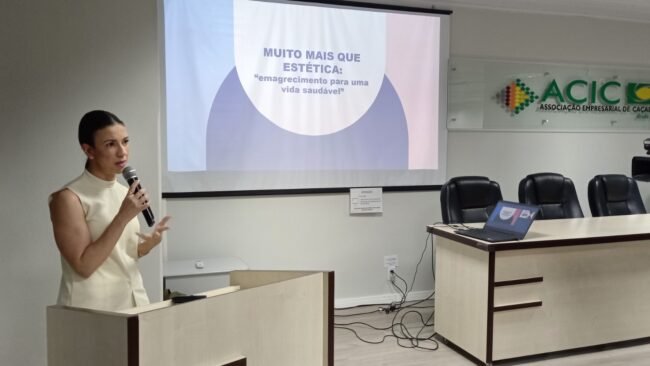 O Núcleo da Saúde da Associação Empresarial de Caçador promoveu na noite do dia 18 de junho a palestra “Emagrecimento e Saúde: Além da Estética e Desempenho Físico”, com os profissionais Dra. Marina Gomes e o preparador físico Lindomar Mineiro. Muitos profissionais da área e estudantes estiveram presentes no auditório da ACIC.
