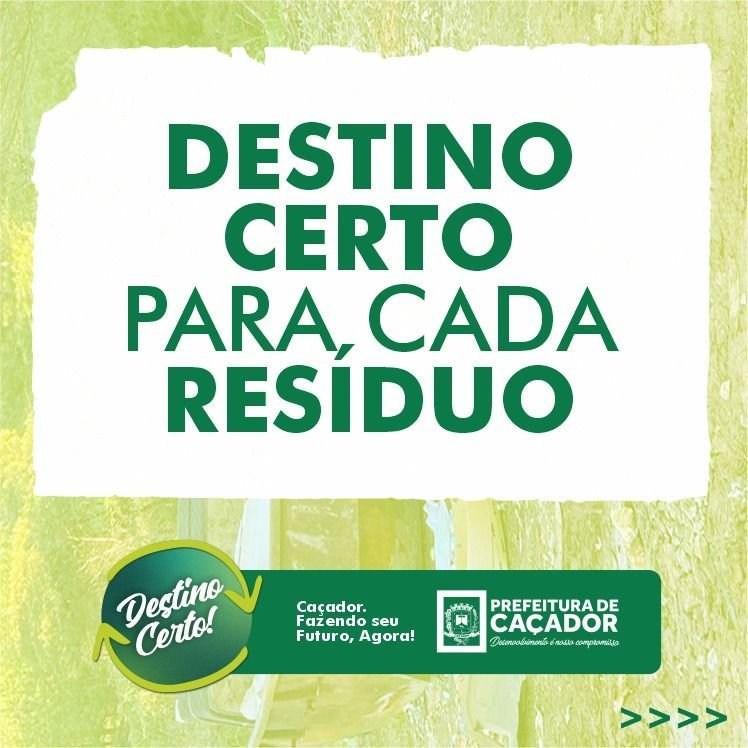 A Prefeitura de Caçador segue disponibilizando serviços de coleta de resíduos, em Caçador, através da campanha “Destino Certo”. A lista completa, com as orientações sobre o que fazer com cada um dos resíduos, pode ser conferida abaixo ou no aplicativo Caçador Digital.