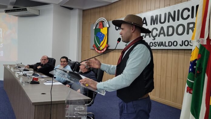 A programação da Semana Farroupilha 2025, que acontece de 13 a 21 de setembro em Caçador, foi apresentada nesta semana na Câmara Municipal pelo membro da Comissão Organizadora, Ronaldo Nery Trindade, a convite do vereador Jonatas Maia (Bainho).