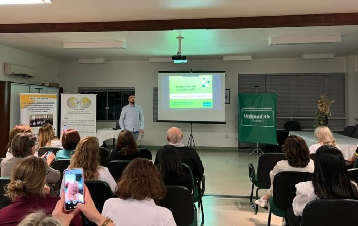 Nesta edição, o encontro contou com a palestra do Dr. Arthur Marçal Santos, clínico geral e médico cooperado da Unimed Caçador, sobre o tema “Avaliação e prevenção do AVE – Acidente Vascular Encefálico”. O médico destacou formas de identificar precocemente os sinais do AVC e a importância da prevenção e do atendimento rápido para salvar vidas.