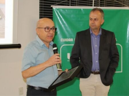 Durante sua fala, o presidente reeleito também fez questão de expressar sua gratidão aos Conselhos Diretivos e ao vice-presidente Dr. Airton José Aguiar, cuja colaboração foi fundamental para os avanços alcançados pela cooperativa. Em reconhecimento aos serviços prestados à Unimed Caçador, o vice-presidente foi agraciado com uma placa de agradecimento, destacando sua dedicação e comprometimento.